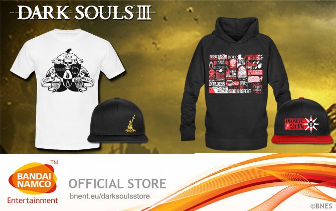 In de online shop zijn allerlei petten, truien en shirts te koop met grappige termen die maar al te goed bij de game passen. 'Never trust a chest', 'Praise the Sun' en een lopende teller die meet hoeveel keer je dood bent gegaan zijn voorbeelden van prints op overigens ook vrouwenkleding. Als je dinsdag dus je vingers gaat breken op Dark Souls III, doe het dan goed.