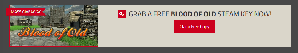 Wie namelijk zijn ogen openhoudt, zal zien dat je overal en nergens gratis games kan scoren. Games zoals Blood of Old, die nu wordt weggeven op IndieGala. Wie hier klikt en een beetje naar onderen scrollt zal onderstaand kader zien, waarin je kunt klikken als je op de website bent ingelogd. En wanneer je dat doet, krijg ook jij een gratis exemplaar van het spel.