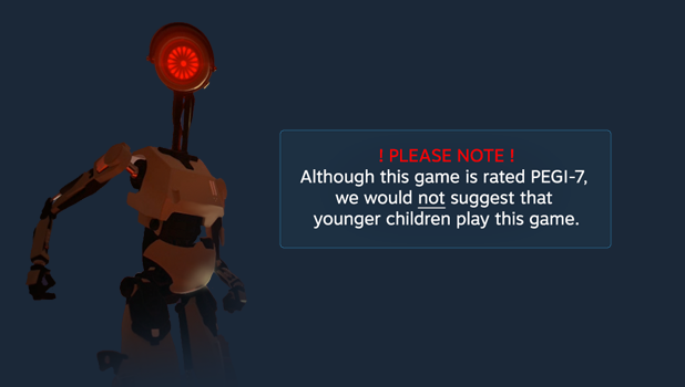 Op de Steam-pagina van hun nieuwe game, Budget Cuts, staat namelijk een waarschuwing dat de game niet geschikt is voor kinderen, ook al heeft het een classificatie gekregen die stelt dat iedereen van zeven of ouder het spel zou moeten kunnen spelen zonder negatieve gevolgen.