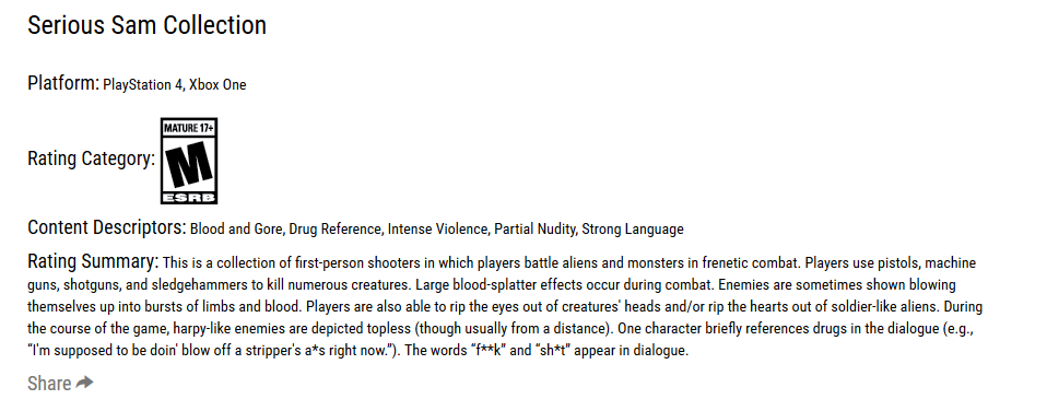 De game Serious Sam: Collection, welke jaren geleden verscheen op Xbox 360 en de PlayStation 3, is mogelijk onderweg naar de PlayStation 4 en Xbox One. Dat blijkt uit een vermelding van de game op de Entertainment Software Rating Board-website.