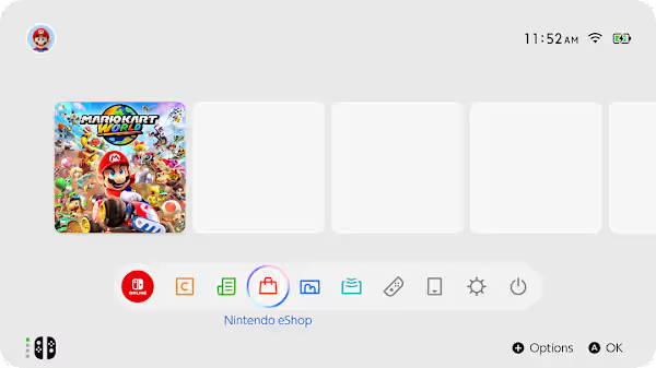 Wie kijkt naar de afbeelding, helaas nogal wazig omdat het origineel erg klein is maar geen betere beschikbaar is, zal twee dingen opvallen. Het eerste is dat de icoontjes nu ronde hoeken hebben, waarschijnlijk om de vormfactor van de Switch 2 te refereren, en de tweede is dat er heel wat meer icoontjes staan op de tweede balk. Dit zal onder andere te maken hebben met nieuwe features als GameChat en het gebruik van Nintendo Camera.