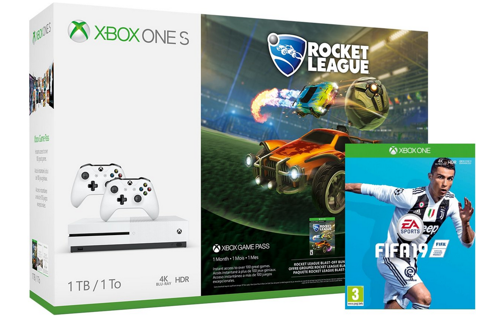 Ook een interessante aanbieding hoeft geen bezwaar te zijn, daar die met regelmaat voorbijkomen. Kijk bijvoorbeeld maar eens naar deze nieuwe deal op Bol.com. Daar krijg je voor € 244,- de witte Xbox One S-bundel met twee controllers en Rocket League én nu tijdelijk een downloadcode voor FIFA 19. Als dat nog geen goed begin van je verzameling is, dan weet ik het ook niet meer. Vooral omdat je met de maand gratis Xbox Game Pass én Xbox Live Gold direct met allerlei games aan de slag kunt, buiten die twee die gratis meegeleverd worden.