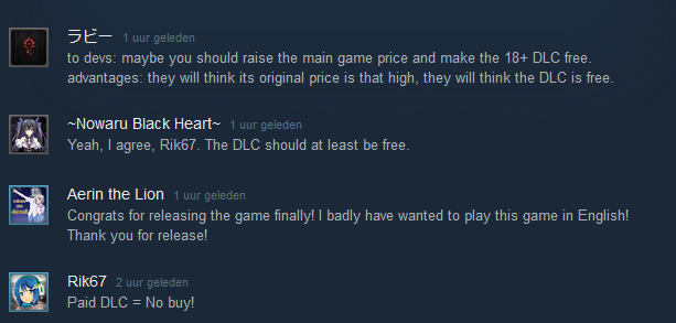 Opvallend genoeg lijkt het probleem nog niet eens in de totaalprijs te zijn, maar in het feit dat de game achter een betaalde censuurmuur zit. Censuur is een gevoelig onderwerp bij fans van Japanse games en des te meer bij zij die erotische visual novels spelen. Het is dan ook te hopen dat uitgever Sekai Project nog gereageerd op deze signalen, zodat er tenminste uitleg kan worden gegeven.