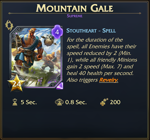 De derde en tevens laatste Season Pass staat immers alweer voor de deur en brengt een nieuwe felbegeerde kaart met zich mee, die door BetaDwarf in de spotlights wordt gezet. Mountain Fale is een magische kaart die bedoeld is voor gebruik in een Stoutheart deck. Het vertraagt tegenstanders, terwijl het jouw units versnelt, waardoor het de perfecte kaart is om het tij te keren in een match waar jij in de verdediging bent gedwongen. Het kan in combinatie met Stoutheart-kaarten zelfs unieke extra's opleveren, maar die moet je zelf ontdekken.