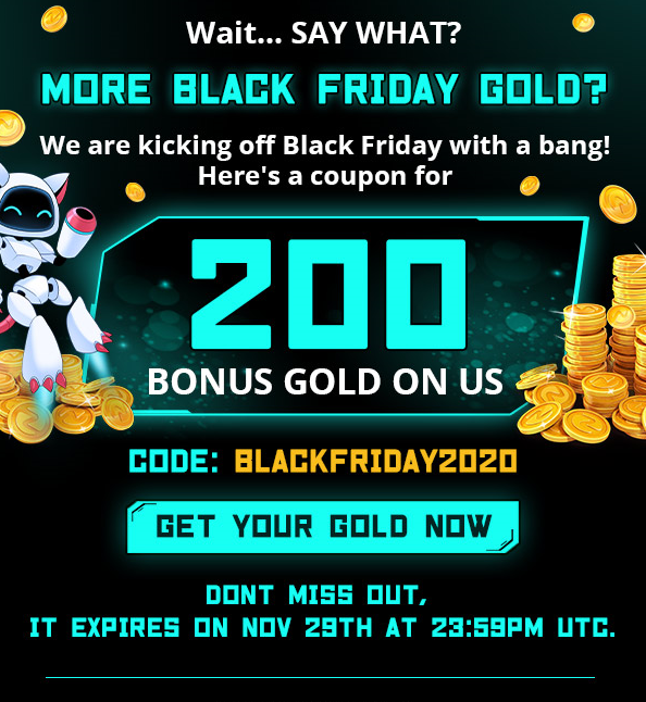 Wat je antwoord is, is in deze niet eens relevant. Want vanwege Black Friday kunt je nu tweehonderd goud (ongeveer twee euro) gratis krijgen. Je gaat hiervoor naar deze link en vult in het vak onderaan de pagina BLACKFRIDAY2020 in. Simpel toch?