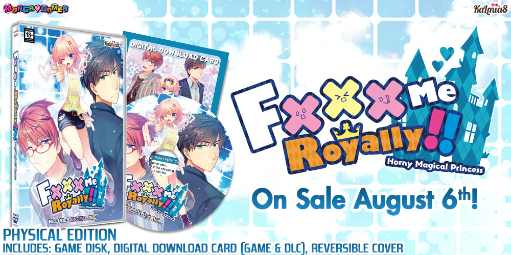 Op 6 augustus verschijnt daarom ook een MangaGamer-exclusieve hardcopy van Fxxx Me Royally, een otomo-game met een prinses die er wel heel veel zin in heeft. Net als Imouto Paradise 3 komt deze game enkel met het spel op disc en een digital download card, al bevatten beide wel de DLC.