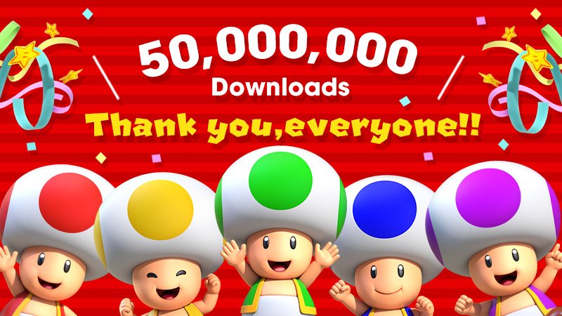 Super Mario Run blijft goed scoren in de App Store: de game is ondertussen 50 miljoen keer gedownload. Om deze mijlpaal te vieren beloont Nintendo iedereen die de game heeft gekocht met tien gratis Toad Rally tickets.