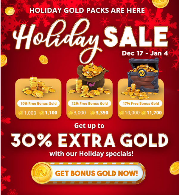 Omdat de feestdagen om de hoek staan, krijg je nu extra veel goud bij je aankopen. Hoe groot het bedrag dat je uitgeeft, hoe meer je er procentueel bovenop krijgt. Met een maximum van 30% extra. Leuk meegenomen lijkt ons.