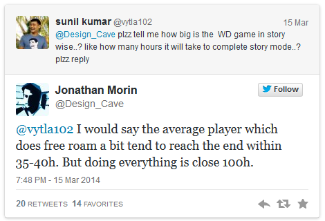 Zo is gebleken is dat het volledig uitspelen van Watch_Dogs je zo'n honderd uur zal kosten. Wanneer je gewoon door het verhaal heen speelt en af en toe eens wat extra doet zal de teller echter maximaal de veertig uur aan tikken.